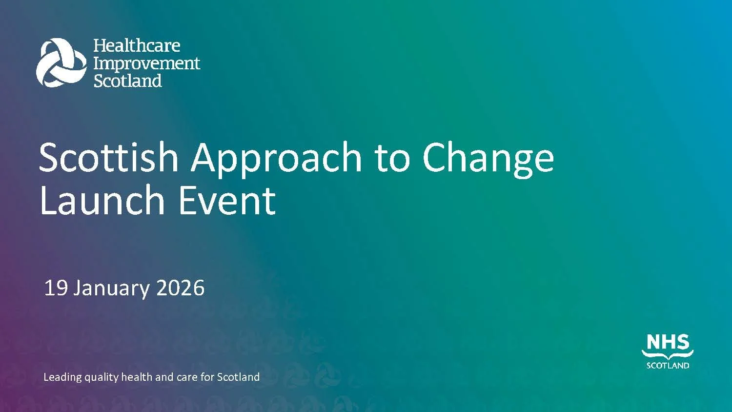 Slide deck produced by Healthcare Improvement Scotland, shared after The Scottish Approach to Change Launch Webinar on 19 January 2026.